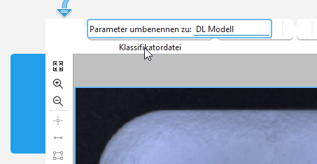 Nach der Umbenennung wird nur der neue Name im Toolboard angezeigt. Wenn Sie den Parameter oder das Ergebnis im MERLIC Creator oder im MERLIC Designer verbinden, wird jedoch auch der Standardname angezeigt.