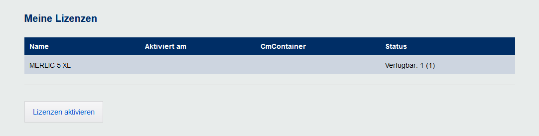 Bei einer erfolgreichen Aktivierung wird die Lizenz der jeweiligen MERLIC-Installation aktiviert, sodass Sie MERLIC sofort mit der Funktionalität des jeweiligen MERLIC-Pakets verwenden können.