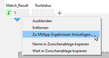 . Sie können auch „Zu MVApp-Ergebnissen hinzufügen...“ im Kontextmenü des Toolergebnisses auswählen.