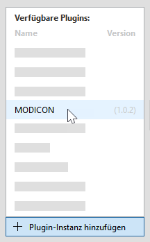 2. Fügen Sie das MODICON®*-Plugin zur Liste der Plugin-Instanzen auf der linken Seite hinzu.