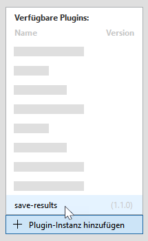 - Fügen Sie das Plugin save-results zur Liste der Plugin-Instanzen auf der linken Seite hinzu.