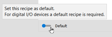 This property defines the index of the recipe file that is loaded automatically if MERLIC is started with process integration, i.e., from the command line with "merlic_rte.exe". If this option is not defined, the recipe must be loaded by the PLC. You can set the default recipe using the MERLIC RTE Setup.