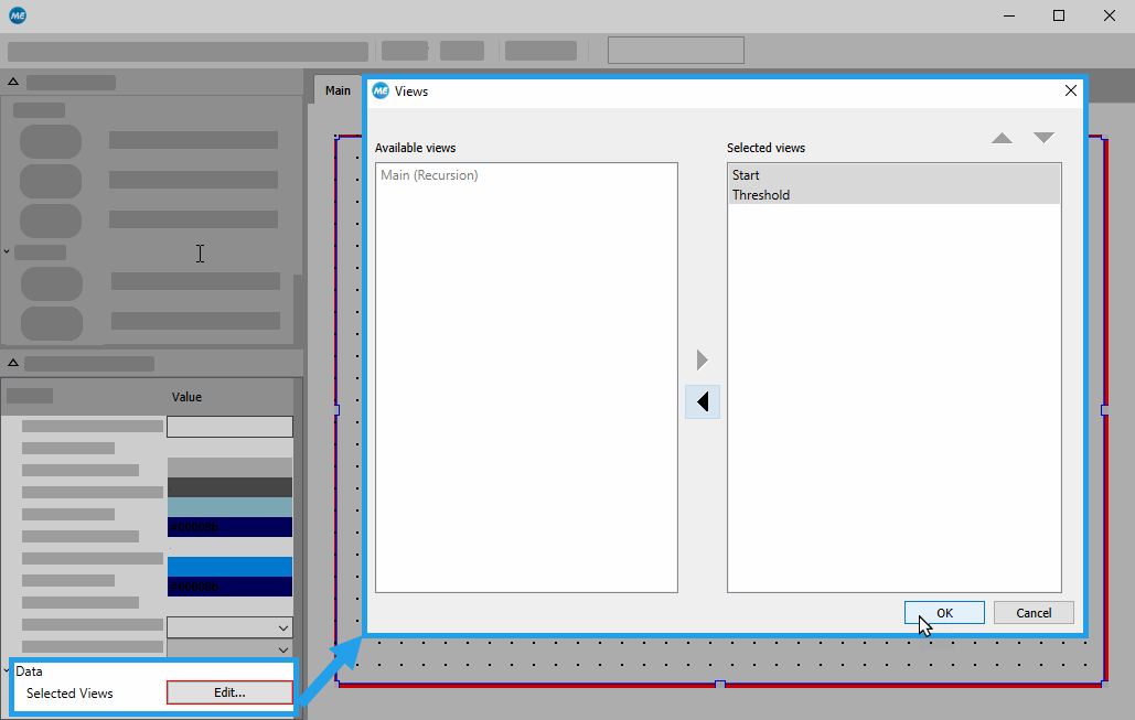 - Open the edit dialog of the property "Selected Views".