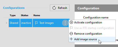 - Select the configuration to which you want to add the new image source. If no configuration exists, you first have to add a new configuration.
