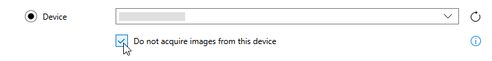 In case of a peripheral device, set the option that ensures that no images are acquired from that device. If this option is set, no image acquisition is triggered for that device. Therefore, the device will be ignored when MERLIC checks if the license restrictions regarding the allowed number of cameras are met.