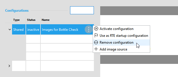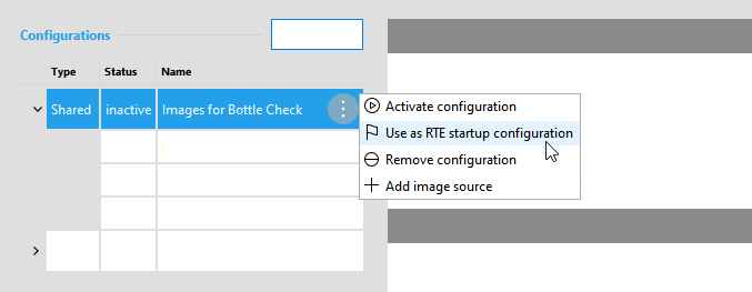 Alternatively, you can also select an RTE startup configuration via the menu of the respective configuration that can be opened via a click on the icon.