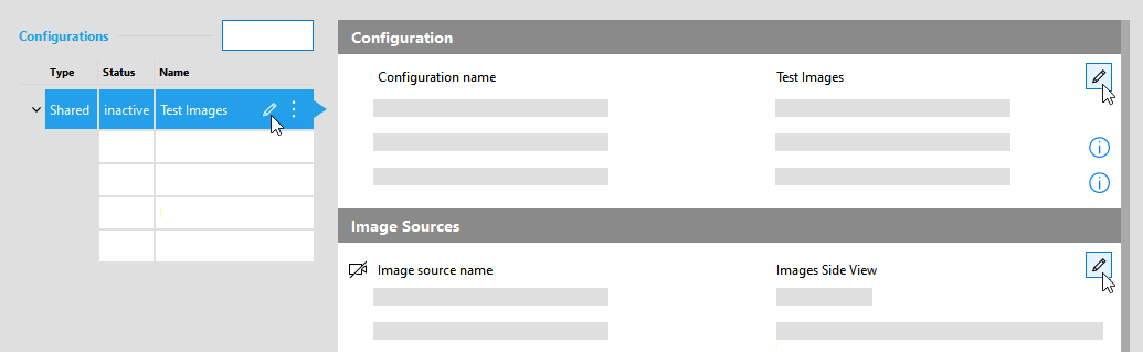 There are two ways to rename a shared configuration or an image source. They work both in the list of configurations on the left and in the overview of the configuration on the right.