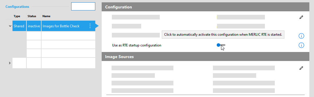 It is not possible to rename configurations and image sources in the MERLIC RTE Setup if you are connected to a MERLIC Creator or MERLIC RTE that runs on a MERLIC version that is older than MERLIC 5.1. The icon will be grayed out in that case. Make sure to use a MERLIC Creator or a MERLIC RTE of the latest MERLIC version.