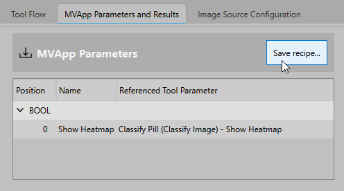 Editing a recipe file is quite similar to creating a new recipe file. You can perform the changes at the MERLIC Vision App (MVApp) that is associated to the recipe file in the MERLIC Creator and adjust the MVApp parameters as desired: