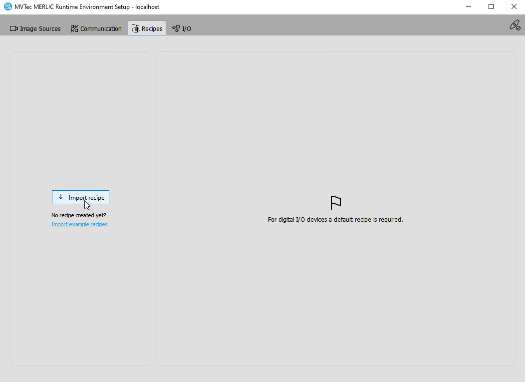 Import recipe" to open the file selection dialog. If you want to import and check one of the provided example recipes, you can also click on "Import example recipes".