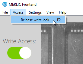 - Open the Frontend menu "Access" and click on "Release write lock".