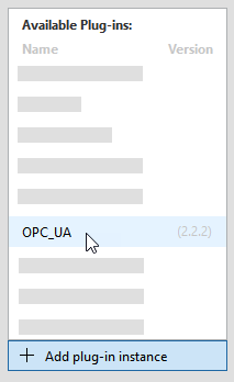 2. Add the OPC UA server to the list of plug-in instances on the left.