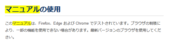 検索結果を開いた後、ハイライト色を消します。 ドキュメントの検索機能を使用すると、検索結果のリストが表示されます。検索結果のリンクの 1 つを開くと、検索語はトピック全体で強調表示されています。以下の例では、「manual」を検索した後のトピックがどのように表示されるかを示しています。