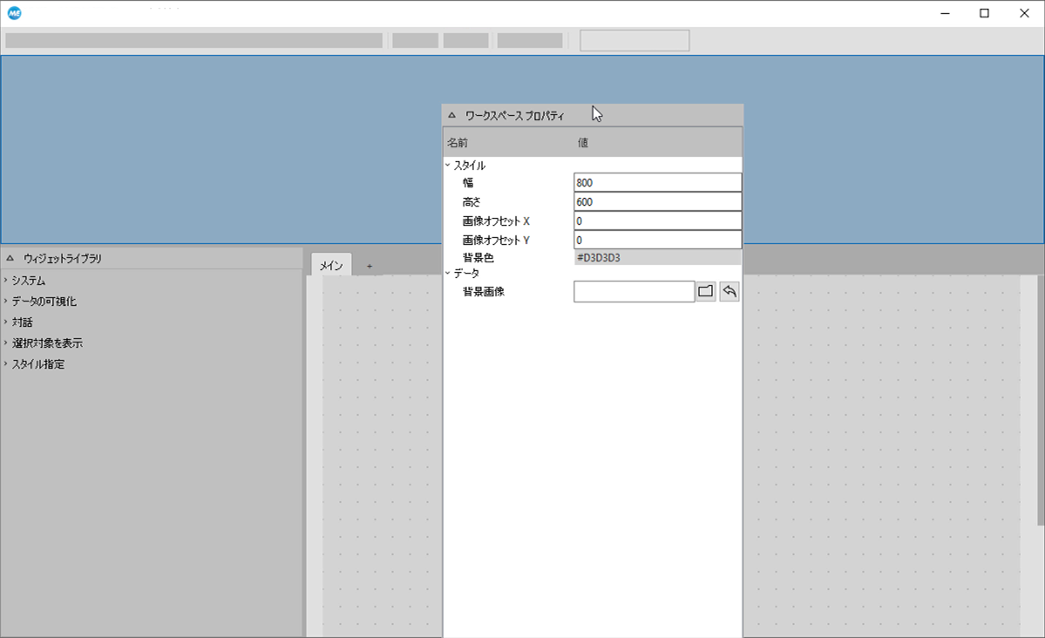 MERLIC Designer のパネルは、すべてウィンドウの特定部分に移動してドッキングできます。そのため、「ウィジェットライブラリ」と「プロパティ」パネルは、作業時に使いやすい場所に移動することができます。複数のパネルを重ねて並べて、タブのように使用することもできます。