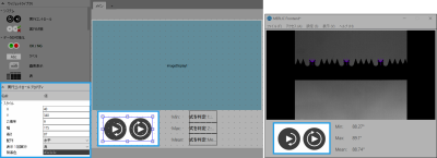 このウィジェットを使用して、MERLIC Vision App の実行の開始および停止など、アプリケーションの実行をコントロールすることができます。デフォルトで、「1 回実行」ボタンもシングル実行ステップに有効になります。アプリケーションを連続実行する場合は、プロパティ「表示 1 回実行」で設定を調整できます。