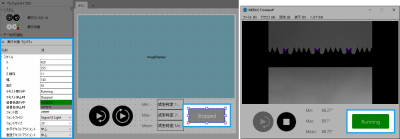 このウィジェットには、マシンビジョンアプリケーションの現在の状態が表示されます。アプリケーションが現在実行中であるかどうかを Frontend で可視化するには、このウィジェットを使用します。