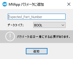 意図した通りの構成が完了したら、以下の手順で目的のツールパラメーターを MVApp パラメーター に追加します。