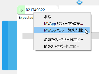 MVApp パラメーター からパラメーターを削除するには、ツールパラメーターのコンテキストメニューを使用します。