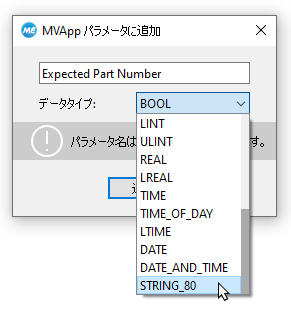 ツールパラメーターを右クリックして、「MVApp パラメーター に追加...」を選択することもできます。