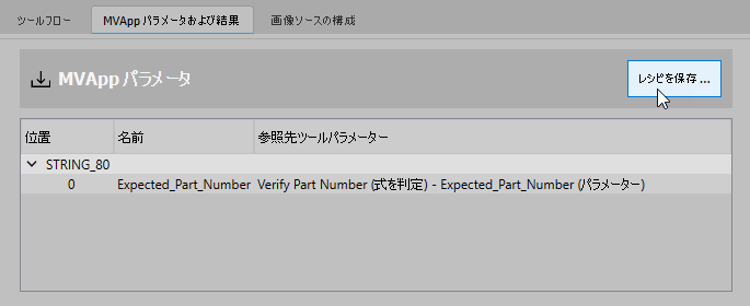 - 「レシピを保存...」ボタンをクリックして、レシピダイアログを開きます。
