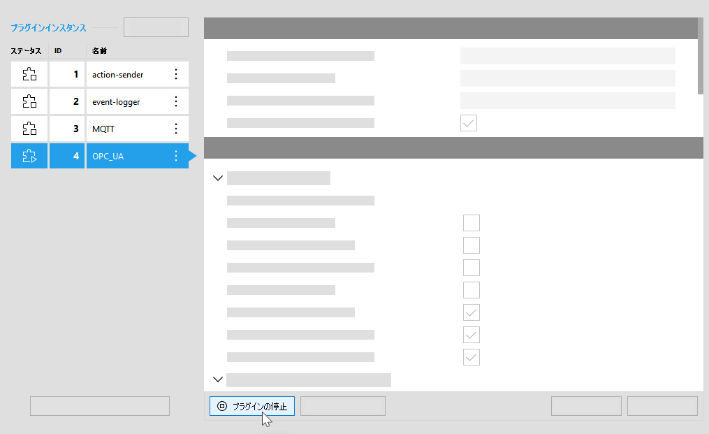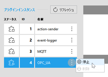 プラグインインスタンスの停止