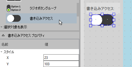「書き込みアクセス」ウィジェットのハンドルをクリックして、書き込みモードを有効化します。