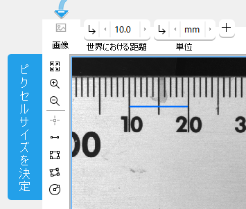 カメラからの画像のキャリブレーションを行うか、オブジェクトの既知のサイズを使用してピクセルサイズを決定するツール。