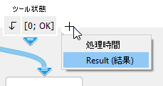 この結果は、ツールの直近の実行の持続時間をミリ秒単位で返します。結果は、追加結果として提供されます。したがって、デフォルトでは非表示になっていますが、ツール結果の横にある ボタンを使用して表示できます。詳細については、ツールリファレンス概要の処理時間の節を参照してください。