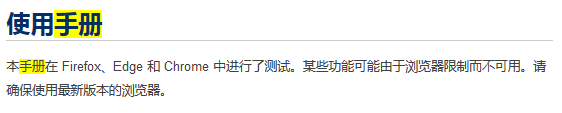 本手册在 Firefox、Edge 和 Chrome 中进行了测试。某些功能可能由于浏览器限制而不可用。请确保使用最新版本的浏览器。