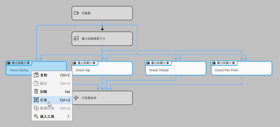 组合”。您也可以使用键盘快捷键 Ctrl+G。如果由于限制而无法对所选工具进行组合,则上下文菜单条目将显示为灰色,且键盘快捷键将不可用。
