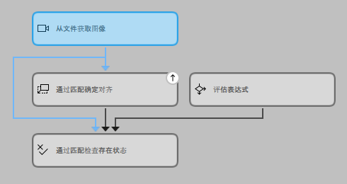 此外,在“工具流程”面板中,相应的工具也会用图标 标记,以指示此工具的至少一个结果已被设置为可传输到外部源。在下面的示例图片中,通过匹配确定对齐工具处的图标表示其至少一个工具结果设置为 MVApp 结果。