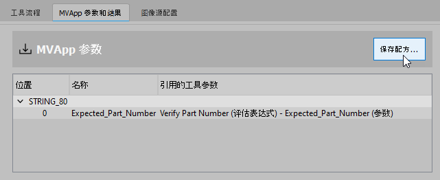 编辑配方文件与新建配方文件的过程非常相似。您可以在 MERLIC Creator 中与配方文件关联的 MERLIC Vision App (MVApp) 处执行更改,并根据需要调整 MVApp 参数: