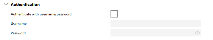此参数定义身份验证的密码。它只能在选中“Authenticate with username/password”参数时设置。默认情况下,密码不显示,而是用项目符号表示。要查看纯文本密码,请单击 图标。