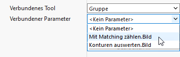 Um eine Verbindung zu einem Parameter oder einem Ergebnis eines Tools herzustellen, das Bestandteil einer Gruppe ist, können Sie genauso vorgehen wie beim Verbinden eines Parameters eines Tools, das nicht Bestandteil einer Gruppe ist. Sie müssen für die Eigenschaft „Verbundenes Tool“ lediglich die jeweilige Gruppe anstelle eines Tools auswählen. Tool und Parameter können dann in der Eigenschaft „Verbundener Parameter“ ausgewählt werden.