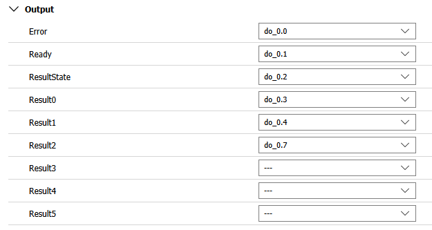 - Wählen Sie das I/O-Gerät aus und überprüfen Sie, welche Ausgabekanäle für die Signale ausgewählt sind, insbesondere für „Result“-Signale und das „ResultState“-Signal.