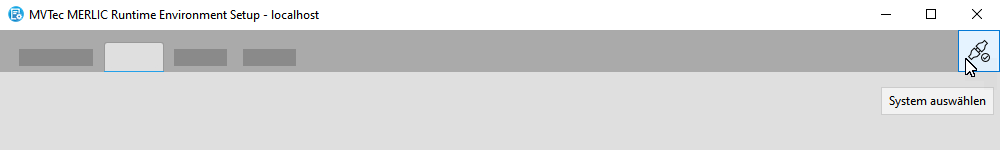 Wenn Sie das MERLIC RTE Setup über den MERLIC Creator geöffnet haben oder zu einem anderen System wechseln möchten, können Sie das Dialogfenster durch Klicken auf die Schaltfläche oben rechts im MERLIC RTE Setup manuell öffnen.
