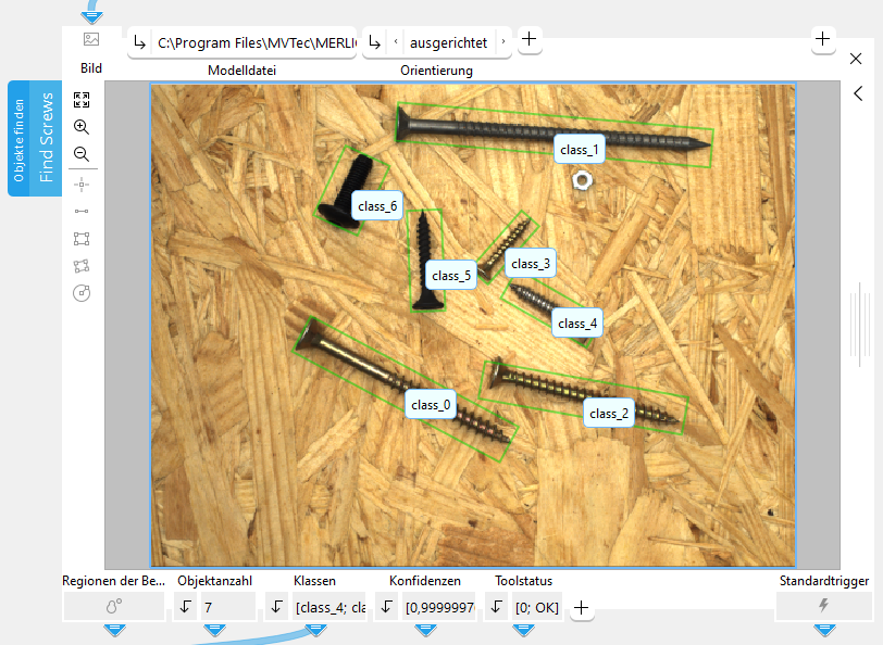 Dieses Ergebnis gibt einen numerischen Wert aus, der die Wahrscheinlichkeit angibt, dass die erkannten Objekte zu der jeweils zugewiesen Klasse gehören. Wenn der Parameter den Wert 1 aufweist, stimmt das gefundene Objekt mit einer Genauigkeit von 100 % mit der trainierten Klasse überein. Wird mehr als ein Objekt gefunden, werden die zugehörigen Konfidenzen als Tupel in der Reihenfolge ihrer Konfidenz ausgegeben.