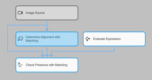 Three tools of the Tool Flow are selected in the Tool Flow panel. The tool Determine Alignment with Matching is the focus tool The focus tool is the editable tool shown in the Tool Workspace. It also serves as reference position when several tools are moved within the Tool Flow panel., thus it is in focus and is displayed in the Tool Workspace.