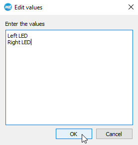 - Click on the "Edit..." button of the property "Values". A new window opens in which you can define your values.