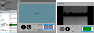 This widget displays the current state of your machine vision application. If you want to visualize in the Frontend whether your application is currently running or not, you may use this widget.