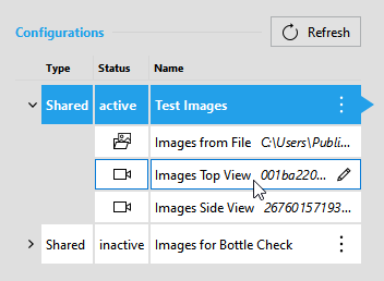 To enable the configuration options for an image source representing a camera device, you have to activate the image source configuration that contains the respective image source. Only then it is possible to acquire images, to check them in the image preview, and to adjust the settings of the camera device. For more information about the activation, see the topic Activating the Configuration