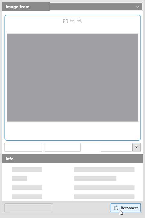 In some cases, the peripheral device might not be connected anymore and therefore the parameters are not available for configuration. In this case, you can try to reconnect to the camera with the button "Reconnect" on the bottom of the image preview.