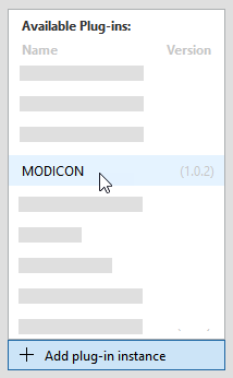 2. Add the MODICON®* plug-in to the list of plug-in instances on the left.