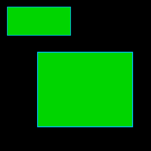 The green areas indicate all elements of "Region 1" and "Region 2" combined to a single region.