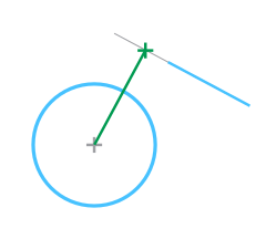 Measure distances between a circle and a point that may be positioned in, on or outside of the circle.