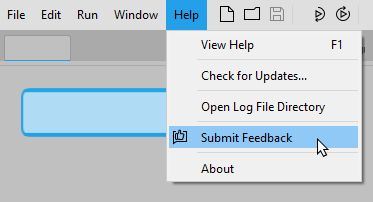 - Open the MERLIC Creator and click on the menu item "Help" in the menu bar. There you can find the menu entry "Submit Feedback":