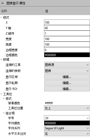要显示在工作区中插入的特定小组件的属性,只需单击工作区内的控件,相应的属性就会在属性面板中显示。下图显示“图像显示”小组件的属性。