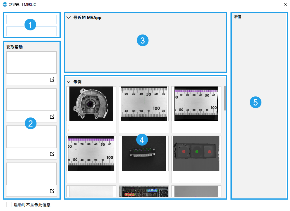 默认情况下,启动对话框处于启用状态。但是,如果您想禁用它,可以勾选启动对话框左下角的复选框。如果您想在关闭或禁用启动话框后将其重新打开,可以通过 MERLIC Creator 的“帮助”菜单访问它。