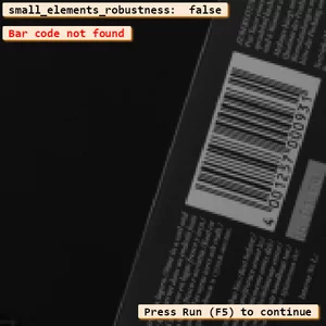 Let's see what it can achieve with our example script barcode_small_elements_robustness.hdev, which you find in HALCON installation in %HALCONEXAMPLES% \hdevelop\Identification\Bar-Code since HALCON 20.05 Progress and HALCON 20.11 Steady.