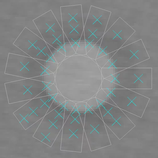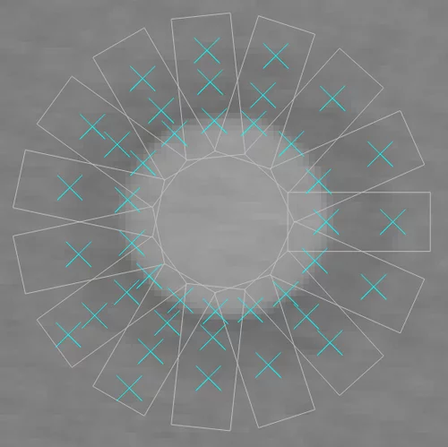 min_score on the other hand specifies the number of measure rectangles that include a support-point or inlier divided by the total number of measure rectangles. min_score does not represent a quality value with respect to the fitting of the geometric shape. However, in images with a high degree of clutter or strong background texture, it is recommended to increase the value of min_score, since otherwise false instances of a metrology object could be found.